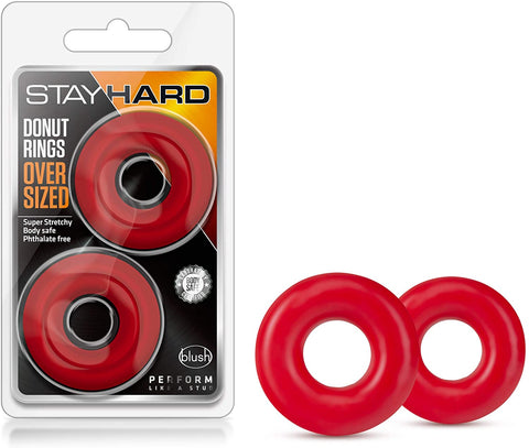 Perform like the stud you are! These Stay Hard Rings are a simple seductive add on to prolong your erection so you can prolong your sessions with your partner! Stay Hard cock rings provide amazing benefits as these can be used around the shaft or both the shaft and testicles to increase both your size and stamina. 33% thicker than our regular Donut rings so they aid in improving your stamina even more! Made from our proprietary blend of super stretchy Elastomer for your safety and hygiene during your intimate play. So pick up this Elastomer Donut Ring set by Blush tonight, you and your partner will love your bigger, harder erection that lasts longer!